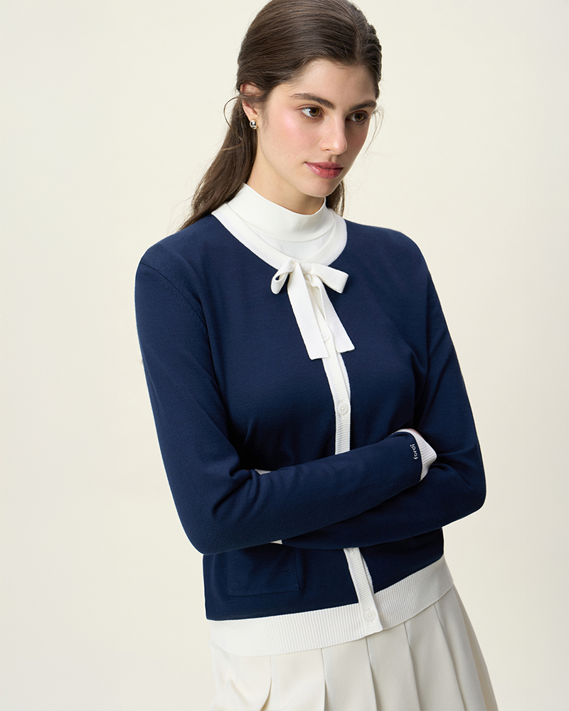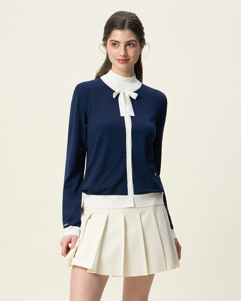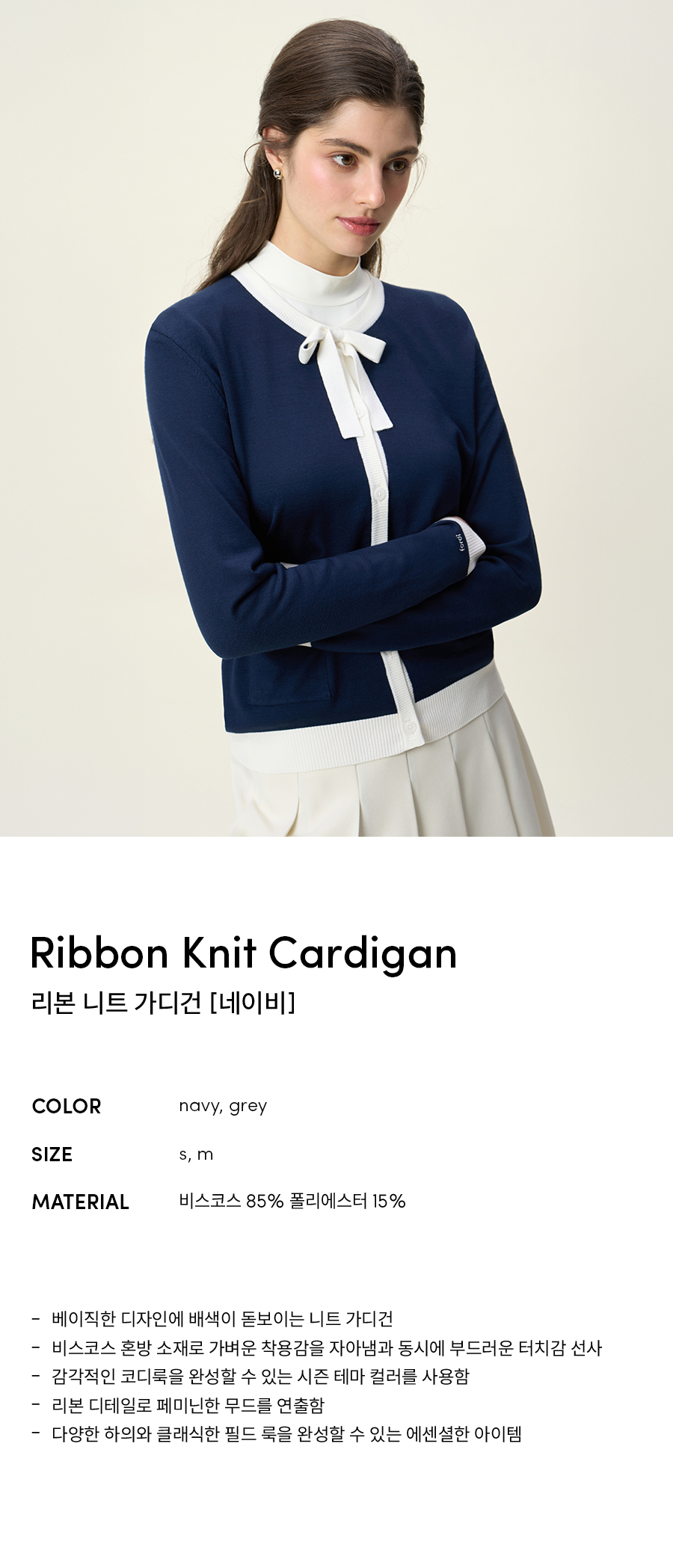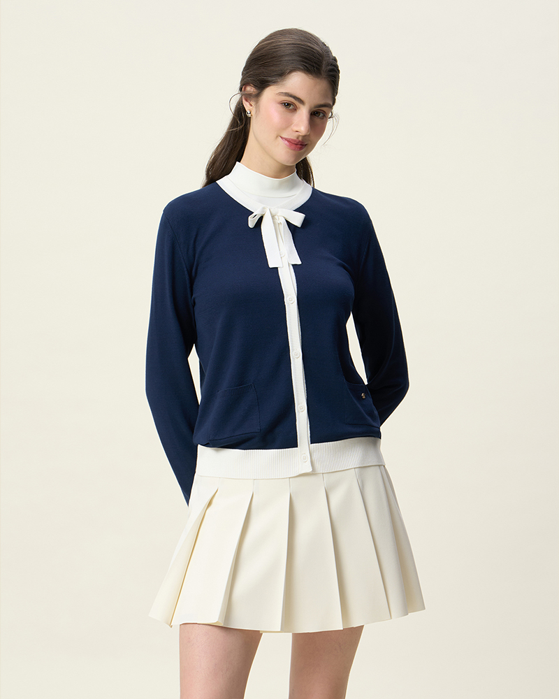 리본 니트 가디건 [네이비]